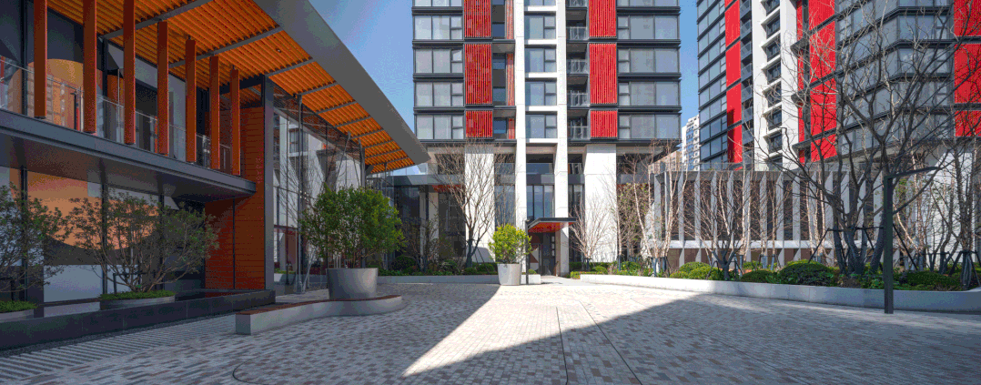 这种色彩一曲从立面延长到低区近人标准,入户雨棚、入户楼栋号,每一栋入口处的从题花境的组合和搭配也呼应了建建立面色彩,从紫红、红色、橙红、橙黄、到月白。