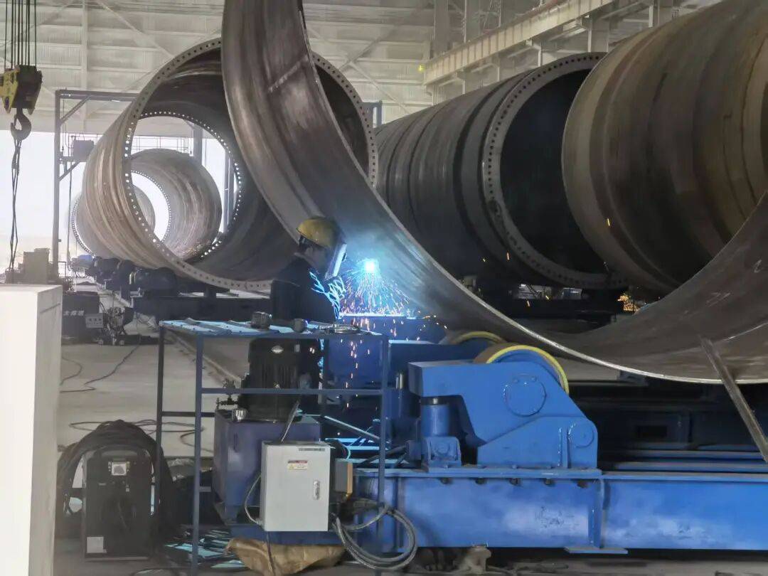 如斯复杂的风机塔筒,能正在10天内完成出产,离不开高科技从动化的出产工艺,而此中一台“大师伙”非分特别惹人瞩目,快节拍出产的环节。