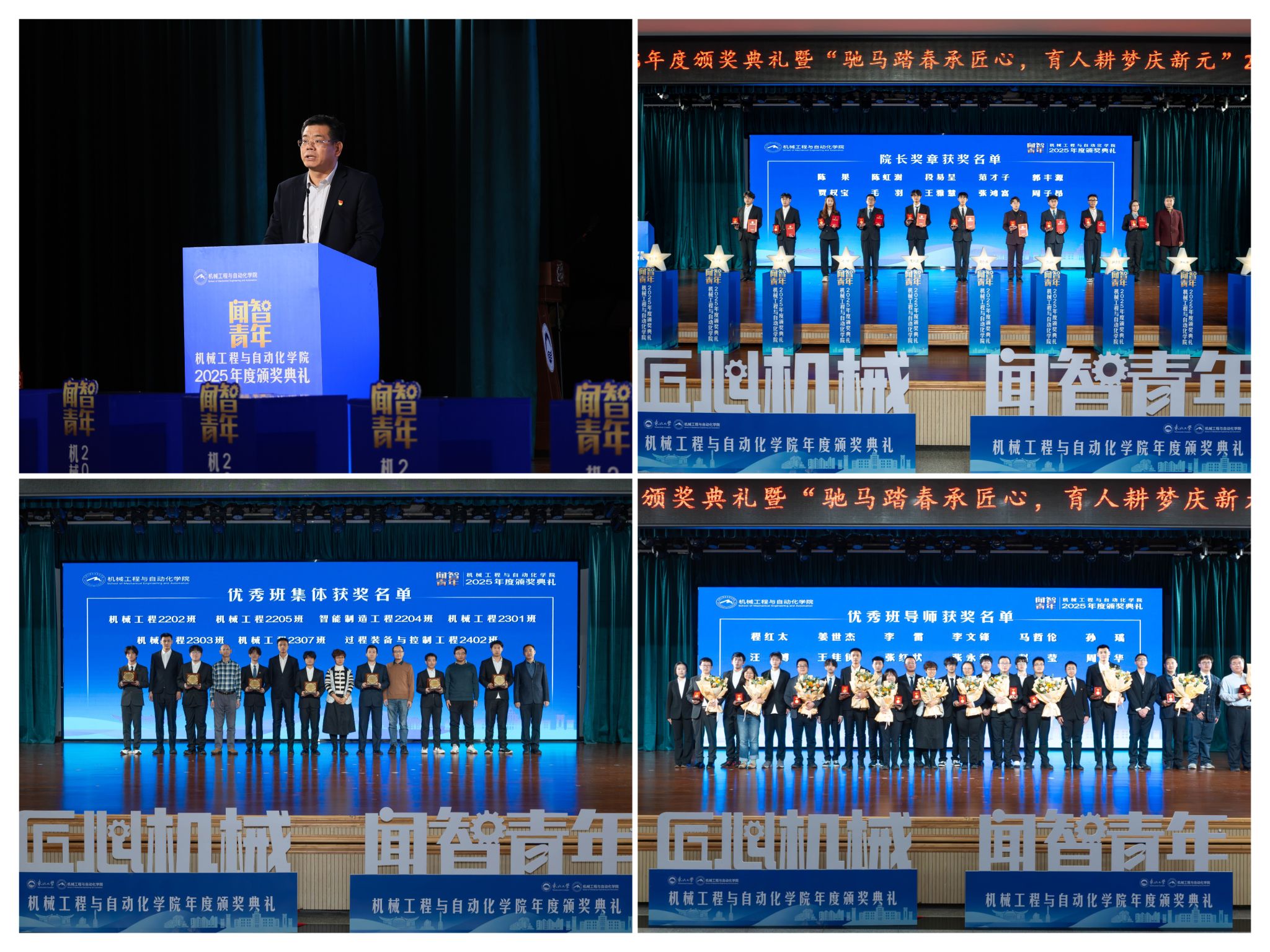学院党委郝建山正在致辞中系统回首了一年来学院取得的主要成绩。学院积极办事国度计谋,投身深度金属矿智能开采纳配备全国沉点尝试室扶植,并正在环节科研范畴实现标记性冲破,同时,学院成功引进增材取激光制制范畴领军团队,稳步推进学校新增学位点扶植,正在人才培育方面,学院学子表示凸起,研究生学术丰盛,正在“挑和杯”“中国国际大学生立异大赛”等多项赛事中斩获国度级项,结业生就业率持续连结高位,展示了全面成长的优良素养。郝建山阐释了“闻智青年”品牌的育人内涵,勉励全体师生胸怀“国之大者”,将小我成长融入“制制强国”计谋,过硬本事,怯于立异创制,勤奋成为担任平易近族回复大任的时代新人。副院长罗忠表扬决定。颁环节分三轮顺次进行。起首颁布的是“院长章”,刘云飞为毛羽等10名正在专业进修、科技立异、社会实践等方面表示杰出的学生颁布章。随后颁布“优良班集体”项,班导师代表为7个正在班风、最初,仪式聚焦育人一线论理学生代表向获评“优良班导师”的教员们献上鲜花取荣誉证书,表达诚挚感谢感动。“院长章”获得者代表毛羽连系科研竞赛取意愿办事履历,讲述了“道阻且长,行则将至”的成长;“优良班集体”获代表豆煜轩分享了班级凝心聚力、共建优秀学风的活泼经验。正在“闻智匠心 共话青蓝”出格环节,优良班导师马哲伦取所带班级学生代表刘定佳同台交换,从分歧视角展示了师生间思惟引领、学业互帮、讲授相长的温情互动,彰显了育人一线的深挚交谊取结实成效。据悉,“闻智青年”是机械工程取从动化学院出力打制的文化育人品牌。本次颁仪式既是年度的集中展现,也是典型树立、激励朝上进步的主要平台,旨正在指导全体学生以先辈为楷模,坚想、夯实专业根本、锻制立异能力,勤奋成长为具有家国情怀、全球视野取创制活力的杰出工程人才,为学校“双一流”扶植和高质量成长注入芳华力量。